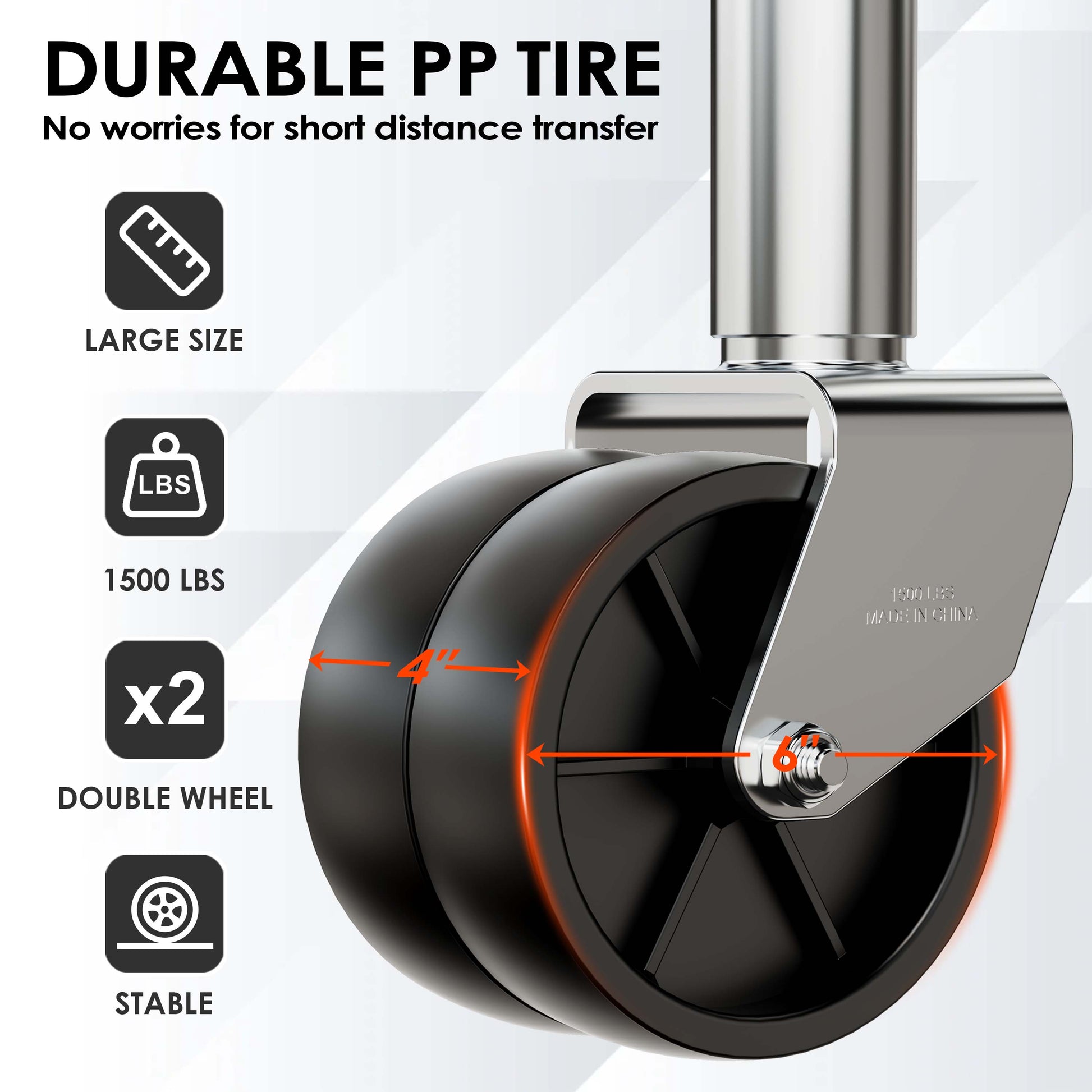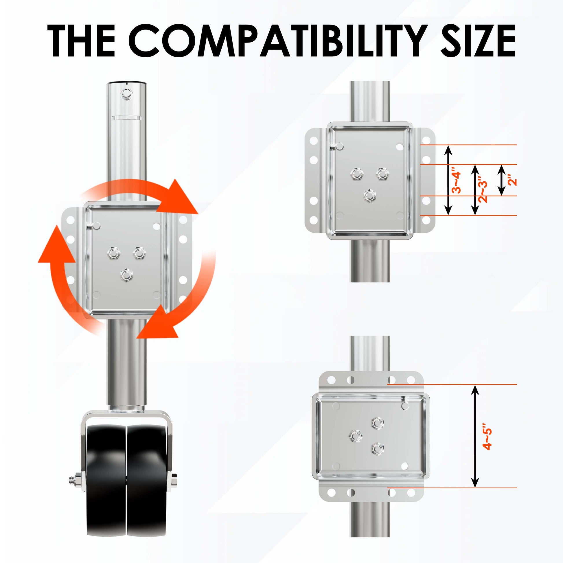 - Powerful Dual PP Tire: Move through tough terrains with our Trailer Jack's sturdy PP tire; its expansive surface area ensures smooth transit, while the tire's resistance to sinking tackles mud, gravel, and sharp rocks
