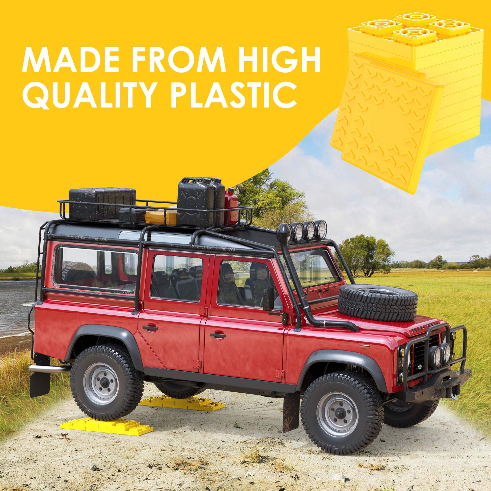 - Reliable Material: CircleRoad rv leveling blocks are made from high-quality and sturdy materials, built to withstand tremendous weight and provide long-lasting performance. The top cover is made of rubberized material, which prevents it from deforming during weight bearing.